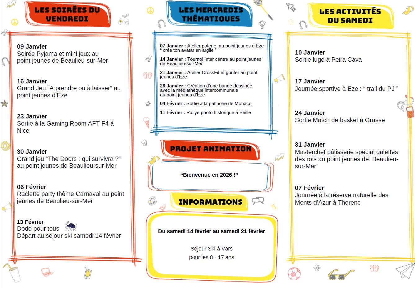 A la sortie du collège ou de l’école, les adhérents sont accueillis par des animateurs diplômés dans l’une des 2 structures du territoire du SIVOM de Villefranche-sur-Mer.