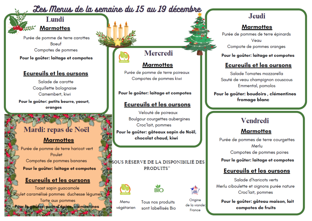 Les menus de la semaine