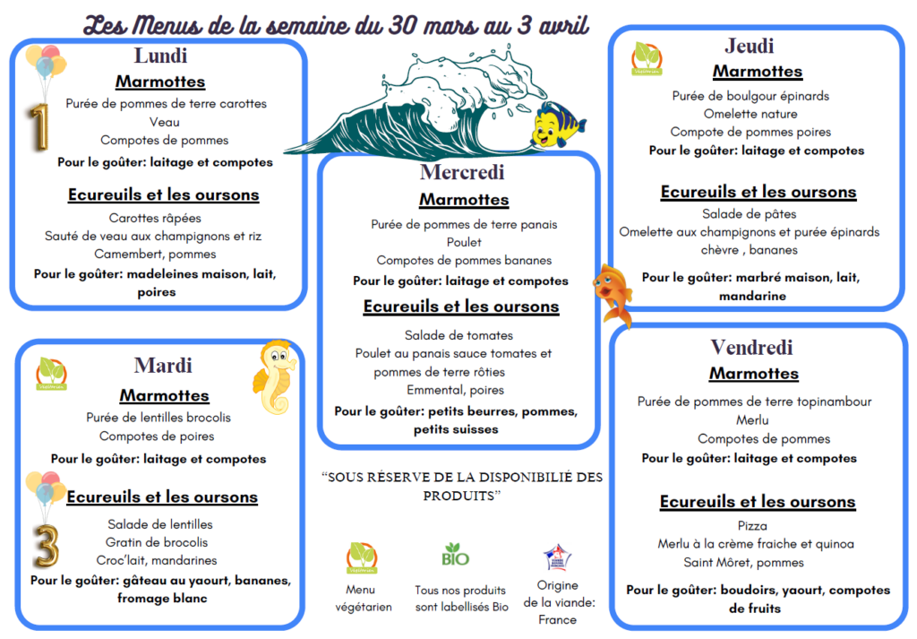 Le Multi accueil intercommunal « les Petits Pas » propose au menu chaque semaine