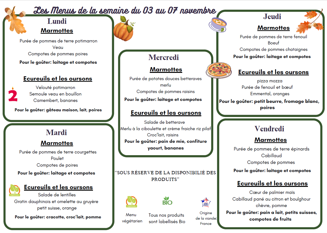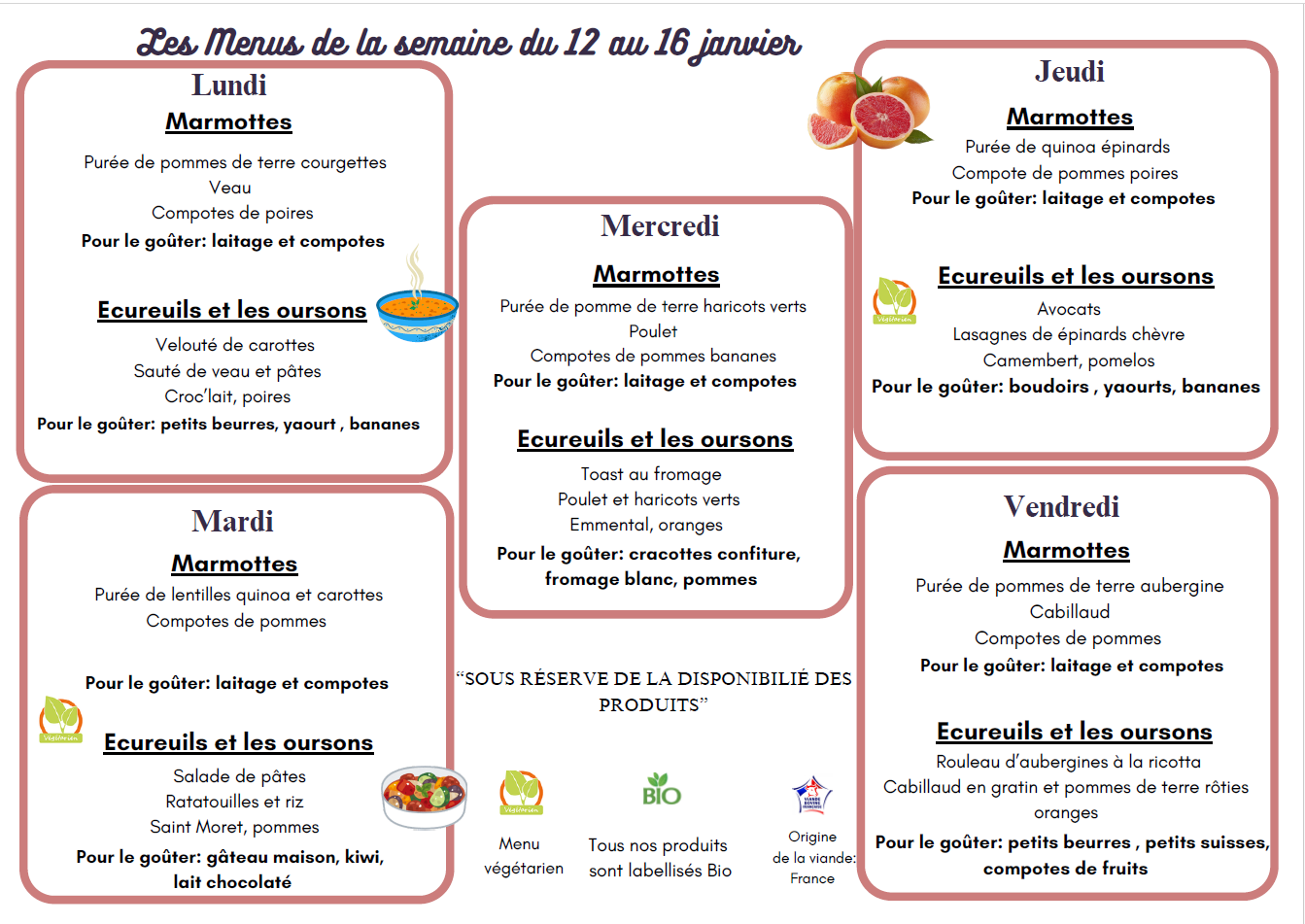 Les menus de la semaine